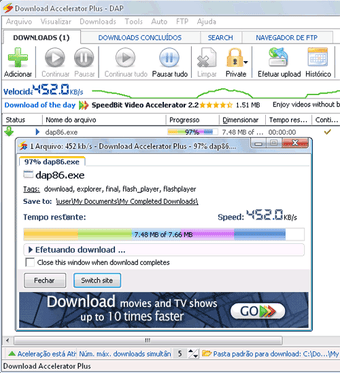 Download Accelerator Plus é um gerenciador de downloads gratuito para Windows que oferece uma série de recursos para otimizar a experiência de download. Com uma interface amigável, o programa permite o aumento da velocidade de download através de múltiplas conexões, o que pode resultar em downloads significativamente mais rápidos. Além disso, ele tem a capacidade de retomar downloads interrompidos, minimizando a perda de tempo e recursos.
